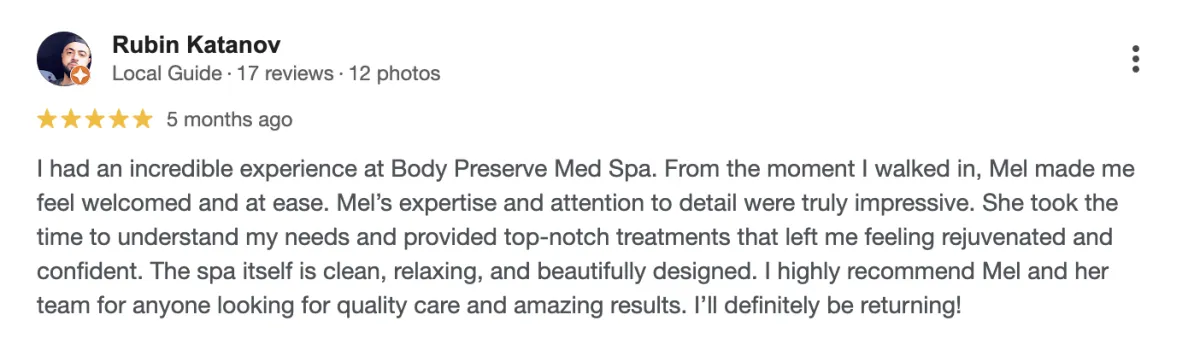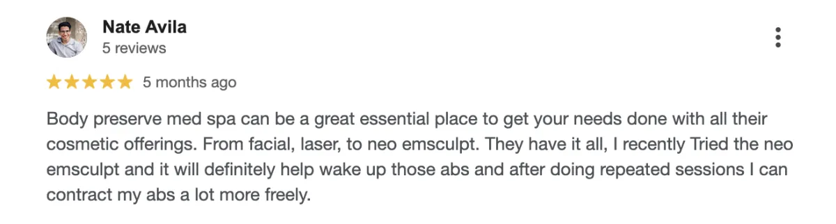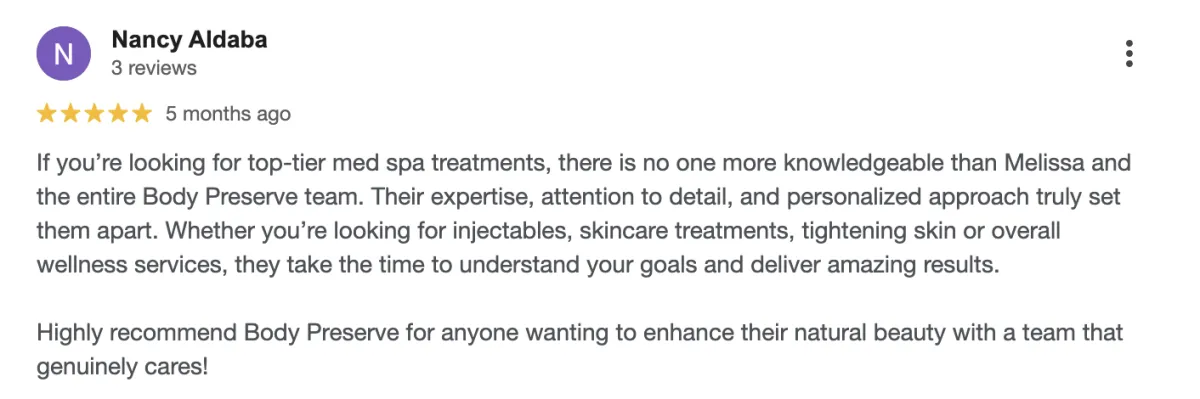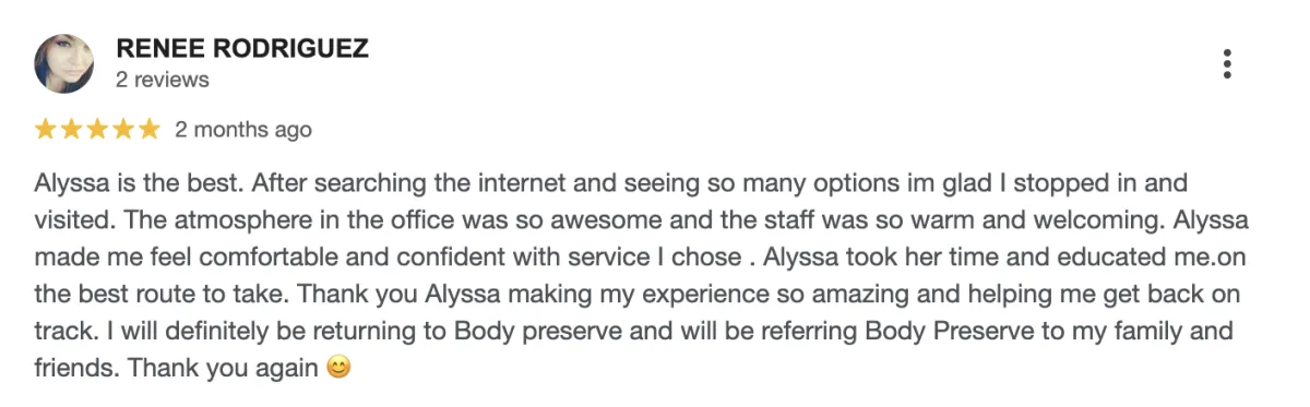 Unlike clinics that simply “sell sessions,” Body Preserve delivers a proprietary Transformation Experience. Every client begins with a Comprehensive Body Assessment, receives a Tailored Transformation Blueprint, and benefits from a Medical & Hormone Optimization Review. On top of that, every package includes a Complimentary Cryosculpt Skin Tightening session — a bonus you won’t find elsewhere.